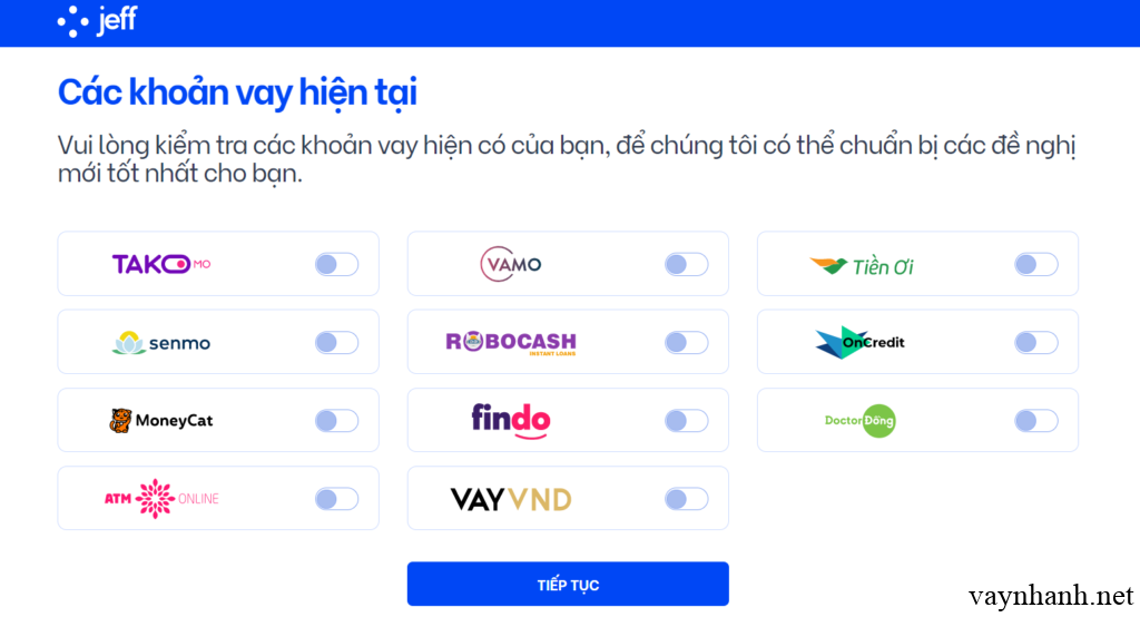 Thông tin về gói vay tiền nhanh Jeff