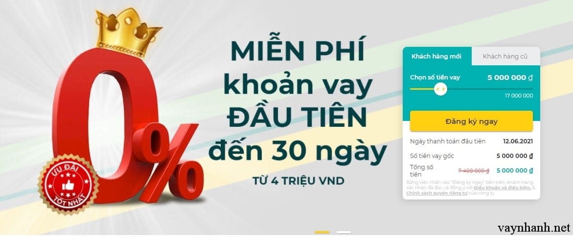 - Lãi suất 0% cho khoản vay đầu tiên.