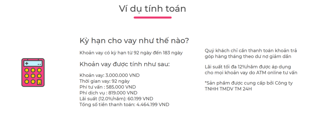 Cùng với đó, khi vay tiền tại ATM Online, bạn cũng cần phải thanh toán các loại phí dịch vụ phát sinh. Nếu bạn muốn tìm hiểu kỹ hơn về vấn đề này, đừng quên liên hệ qua 1900636697 để được tư vấn và hỗ trợ tốt nhất.