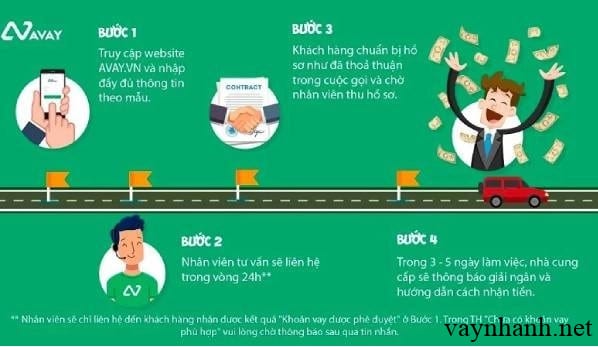Sau khi đã lựa chọn được gói vay, ký kết hợp đồng vay tiền tại Avay. Khách hàng cần chờ thông tin hướng dẫn giải ngân từ Avay. Thường quá trình giải ngân sẽ diễn ra từ 1 – 3 ngày tùy theo gói vay.