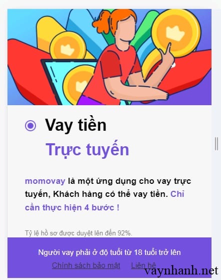 Thông tin gói vay tiền nhanh H5 Momovay