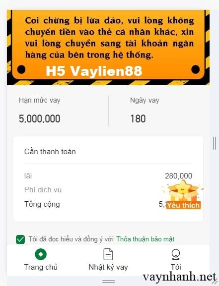 Thông tin gói vay tiền nhanh H5 Vaylien88