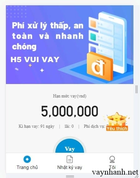Tuy nhiên bạn cũng có thể vay trực tiếp tại website: https://h5.vui-vay.com/dist/#/m/home