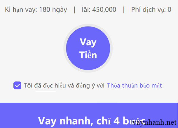 Ngoài ra, khách hàng có thể vay lãi suất 0% / năm và thuật ngữ cho vay cũng cực kỳ hợp lý để cung cấp sự hài lòng của khách hàng khi khách hàng sử dụng dịch vụ.