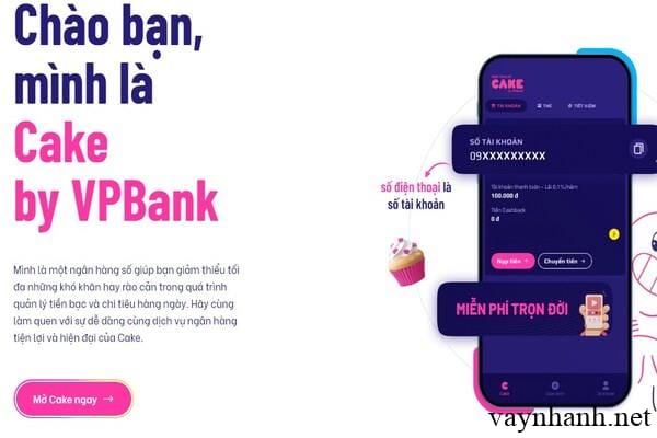 Tài khoản cake ngân hàng số là một ứng dụng được thành lập và phát triển bởi Ngân hàng TMCP Việt Nam Thịnh Vượng (VPbank) và công ty cổ phần Be Group, ứng dụng cho phép người dùng thanh toán, chi trả các khoản phí, thực hiện các giao dịch khác nhau miễn phí.