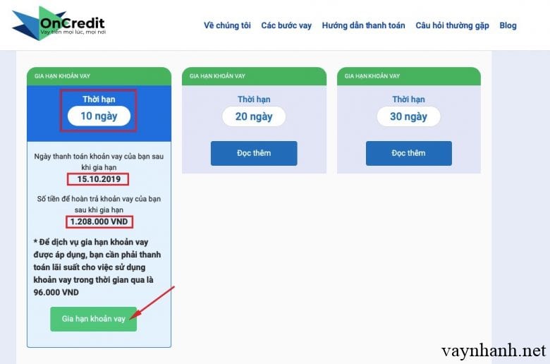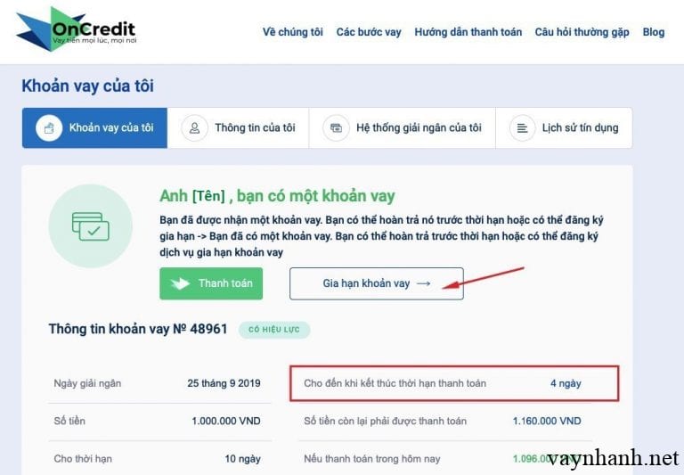 Hướng dẫn gia hạn khoản vay trên Oncredit