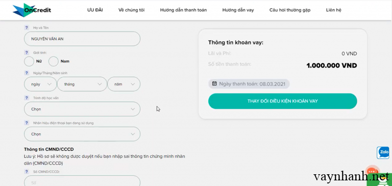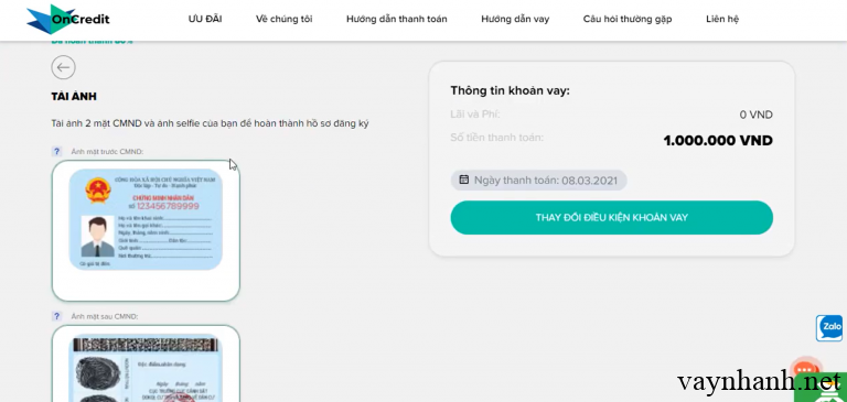 - Cung cấp cho giao dịch viên CMND/SĐT mà bạn đăng ký vay tại Oncredit
