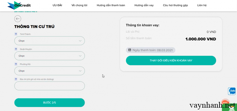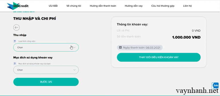 Quy Trình vay tiền nhanh 0% lãi suất trên Oncredit