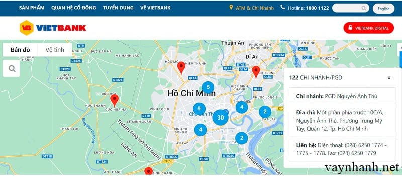Hotline VietBank chi nhánh Thành phố Hồ Chí Minh