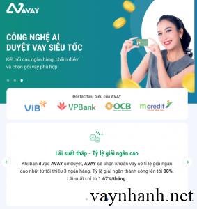 Avay là cầu nối để liên kết khách hàng với các sản phẩm vay phù hợp từ những ngân hàng và tổ chức tài chính uy tín hàng đầu như VPBank, SHB, OCB, FE Credit, Mcredit, Mirae Asset, …nhằm mang tới các khoản vay phù hợp nhất dành cho bạn. Khi vay tín chấp tại Avay, bạn chỉ cần cung cấp số điện thoại, chứng minh nhân dân (CMND) hoặc căn cước công dân (CCCD) là đã có thể được duyệt vay ngay trong 2 phút.