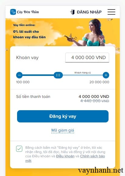 Các bước đăng ký vay tiền nhanh Cây Đèn Thần