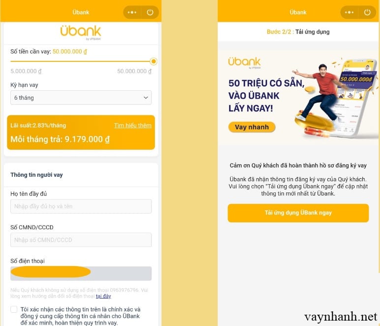 | Hình thức vay | Vay tiền nhanh online |