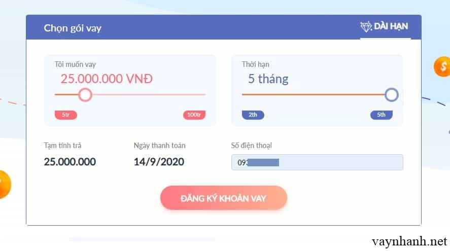 • Sau đó nhập SĐT để gửi yêu cầu vay.