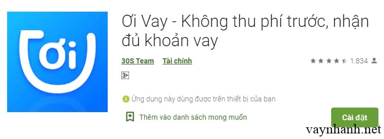 Ơi Vay còn là app vay tiền online nhận được tin tưởng người dùng, lượt tải trên kho ứng dụng google play đến trên 3000 người.