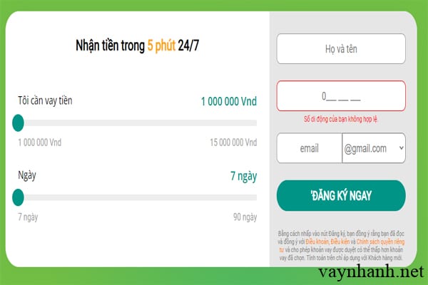 | Cách thức vay | Vay online, vay trực tuyến, vay qua điện thoại |