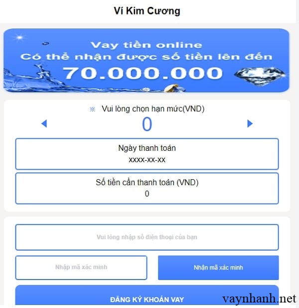 Thông tin vay nhanh Ví Kim Cương