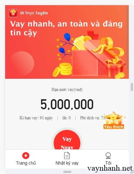 - Ví Trực Tuyến là một web cho vay tiền online với khoản vay đầu tiên lên đến 5 triệu đồng. Với thủ tục nhanh chóng, đơn giản, xét duyệt tự động giúp tiết kiệm thời gian của khách hàng.